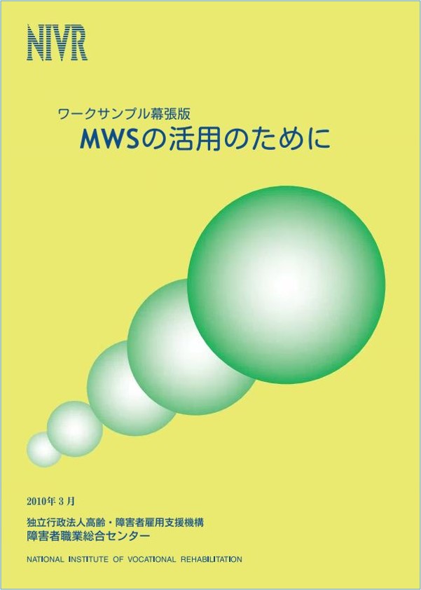 ワークサンプル幕張版(MWS)とは、当機構の障害者支援部門で開発したワークサンプルの名称で、OA作業、事務作業、実務作業に大別された13種類によって構成されています。簡易版と訓練版に分かれ、作業の疑似体験や職業上の課題を把握する評価ツールとしてだけでなく、作業遂行力の向上や障害の補完方法の活用に向けた支援ツールとして使うことができます。本書では、MWSの特徴や機能、活用上の留意事項、活用事例等を掲載しています。