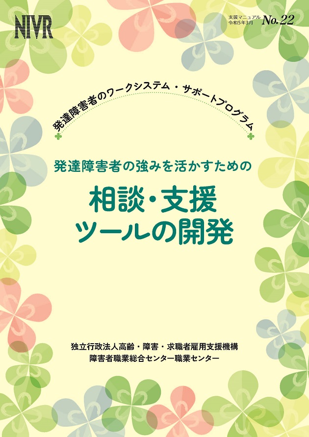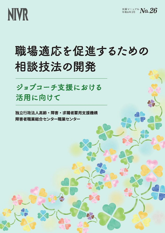 生活習慣やストレス対処等の支援技法をもとに、職場適応を図るジョブコーチ等の支援者が相談支援場面で活用しやすいように、改良を加えたツールを作成、これらのツールを活用した職場適応を促進するための相談技法を開発し、支援マニュアルとして取りまとめたものです。