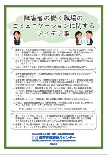 障害者職業総合センター(NIVR)ホームページに掲載している各種成果物のうち、令和7年度上半期(2025年4月1日~2025年9月30日)にダウンロードされた回数が上位のものについてご紹介します。