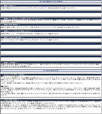 収集事例からシートⅡ(就労のための基本的事項)の評価項目とシートⅢ(就労継続のための環境)の評価領域の選択状況を紹介し、それぞれの選択方法の原則と状況に応じた対策を掲載しています。