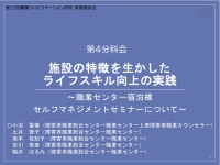 5 施設の特徴を生かしたライフスキル向上の実践 ~職業センター宿泊棟セルフマネジメントセミナーについて~
