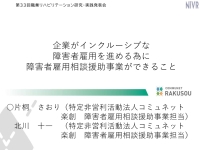 本発表では、多様な障害者を対象とした16年間(2008年度から2023年度まで)の長期縦断調査(パネル調査)により、職業サイクルの全過程にわたる状況を把握した結果について報告する。障害者の就業・生活の実態が年齢を重ねることでどのように変化したかについて世代別・障害種類別に集計したことから、長期的な視点から障害者の職業人生における変化への適応を支えることの重要性が示唆された。