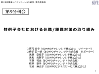 SOMPOチャレンジド株式会社は設立8年目を迎え、業務の拡大とともに障害者社員の増員にも取り組んできた。一方で障害者社員の休職や離職についての課題も顕在化してきた。そのため一昨年度から社員の休職や離職防止のための分析を専門職で実施し、昨年度は社内の部署を横断した部会を発足し、更に原因、課題の細分化、今後の対策について検討を行った。本発表では、これまでの取り組みの結果と今後の展望について述べたい。