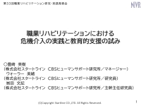 職業リハビリテーションの現場では、自殺念慮や自傷行為等の様々な危機的状況に直面することがあり、支援職は迅速かつ適切な対応が求められる。しかし、個人情報保護等の観点から具体的な対応事例の共有は難しく、現場で孤立する支援者も多い。本発表では、対人援助職が共通して抱える危機介入事態を確認し、弊社における支援職教育や社内体制を含む、危機介入への取り組みを紹介することで現場支援の一助となる情報を共有したい。