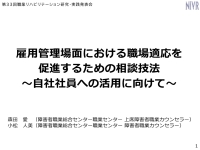 7 雇用管理場面における職場適応を促進するための相談技法 ~自社社員への活用に向けて~