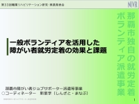 那覇市が独自に行う障がい者の就労定着をサポートする登録型ボランティアの実績をもとに、そこから分かった効果と課題を発表いたします。